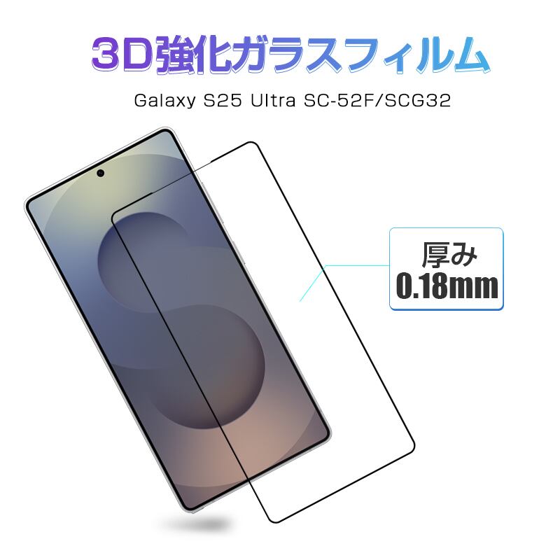 【2枚セット】Galaxy S25 Ultra ガラスフィルム 強化ガラス スマホ画面保護 フィルム スクリーン保護フィルム クリア仕様 スマートフォン 液晶保護 耐衝撃 スクラッチ防止 携帯電話 ディスプレイ保護シール 3D 全面保護 貼り付け簡単 液晶画面保護 0.18mm 薄型 硬度10H