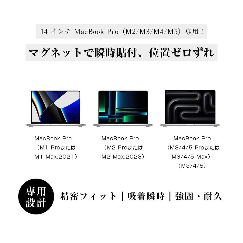14インチ MacBook Pro(M1 Pro/M1 Max.2021/M2 Pro/M2 Max.2023/M3/M4)対応 ブルーライトカット 液晶保護フィルム 磁気吸着 視力保護 目の負担軽減 耐衝撃 傷防止 気泡レス 14in MacBook Pro(M5)/(M5 Pro)/(M5 Max) スクリーン保護シート MacBook Pro (M4 Pro)(M4 Max)