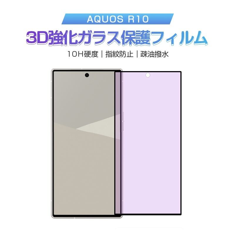 【2枚セット】AQUOS R10 ガラスフィルム ブルーライトカット 強化ガラス スマホ画面保護 フィルム スクリーン保護フィルム 目を守る スマートフォン 液晶保護 耐衝撃 アクオス アールテン スクラッチ防止 docomo 携帯電話 ディスプレイ保護シール 3D 全面保護 貼り付け簡単 | meisei-shop