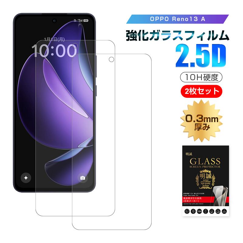 【2枚セット】OPPO Reno13 A 強化ガラス スマホ画面保護 フィルム スクリーン保護フィルム クリア仕様 スマートフォン 液晶保護 耐衝撃 CPH2699 楽天モバイル スクラッチ防止 携帯電話 A501OP ディスプレイ保護シール 2.5D 全面保護 Android 貼り付け簡単 液晶画面保護 | meisei-shop