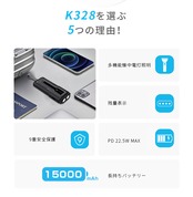 iPhone 16を約2.5回ほど充電できる大容量モバイルバッテリーです。15000mAhの容量あれば、旅行先では家族とシェアしたり、出張中に社用携帯と個人端末を同時に充電できるなど満足感のある容量です。通学などの普段使いはもちろん、緊急時に最低限連絡手段を確保する為の非常用にも使える使い勝手のいいモバイルバッテリーです。
