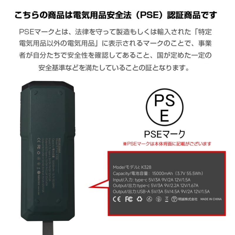 日本電気用品安全法の基準に適合し、PSE認証取得済みです。