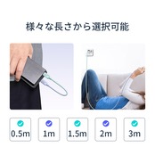 長さは0.5m/1m/1.5m/2m/3mの5つがあり、使用シーンやニーズによって、自由に選べられます。