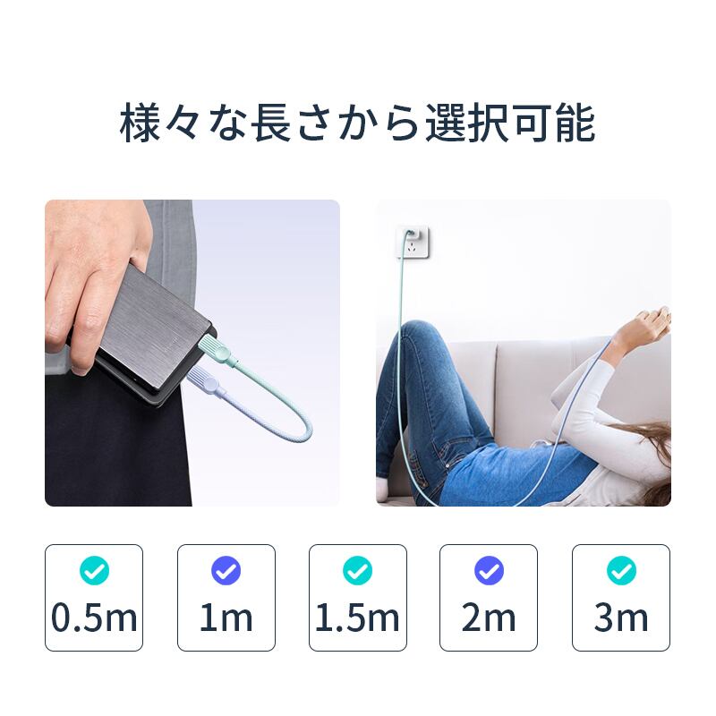 長さは0.5m/1m/1.5m/2m/3mの5つがあり、使用シーンやニーズによって、自由に選べられます。