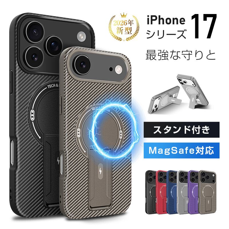 iPhone17 ケース カーボンファイバー 軍事規格 マグセーフ対応 MagSafe スタンド付き 軽量 薄型 高耐久 衝撃吸収 マグネット 強力 磁気リング 冷却 放熱溝 設計 撥油 コーティング オレオフォビック 指紋防止 滑り止め スタンド機能 折りたたみ 角度調整 動画視聴 オンライン会議 ハンズフリー 縦向き 横向き 精密 フィット ボタン 感覚 弾性 TPU 着脱 簡単 ストラップ ホール カメラ 保護 レンズ ガード 画面 縁 隆起 ブラック 黒 レッド 赤 ブルー 青 グレー 灰 パープル 紫 ブラウン 茶 全機種 対応 iPhone17 Pro iPhone17 Air iPhone17ProMax ビジネス ギフト プレゼント おしゃれ 高級感 人気 キャリア レディース メンズ 男女兼用 贈り物 敬老の日 誕生日 バレンタイン ホワイトデー 女子 女性 男子 男性 入学 卒業 母の日 父の日 祝い 就職 退職 誕生日 記念日 おすすめ 新品 新作 2026 最新型 即納 送料無料