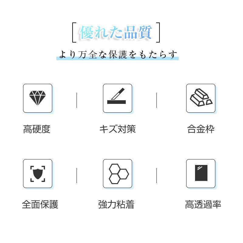 アルミニウム合金枠と10H硬度の強化ガラス素材を採用することにより、外部からの衝撃を最大限にカットし、レンズ割れを徹底防御する耐衝撃の強化カメラ保護ガラスフィルムです。 落下などによる衝撃を防ぎ、保護機能を更に強化させます。飛散防止処理をされて、万一がガラスフィルムが破損した際にも、破片を飛び散らないので、安心にご利用いただけます。