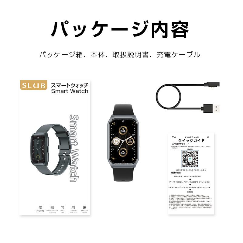 【パッケージ内容】スマートウォッチ本体/充電ケーブル/日本語取扱説明書