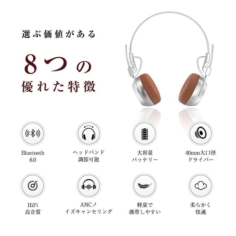 ワイヤレスヘッドホン イヤホン ヘッドセット レトロ Bluetooth6.0 ブルートゥースイヤホン 低遅延 ANC ENCノイズキャンセリング クリア通話 最新版 瞬時接続 自動ペアリング ハイレゾ対応 40mmドライバー HiFi高音質 折り畳み Type‐C急速充電 【PL保険加入済み製品・安心】 | meisei-shop