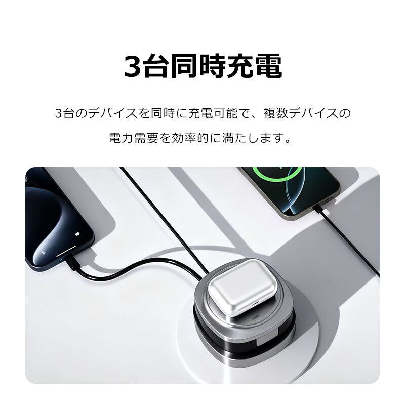 モバイルバッテリー 12000mAh 46.2Wh 大容量 マグネット充電器 巻き取り式ケーブル内蔵 ワイヤレス充電器 iWatch/AirPods磁気充電 MagSafe対応 ノートPC充電対応 3台同時充電 iPhone17充電 iphone16/15/14 /13/12/ iOS アップルウォッチ対応 【PL保険加入済み製品・安心】 | meisei-shop