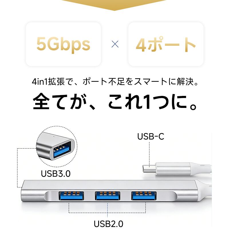 4in1 USB-C ハブ タイプC 拡張ドック 4ポート USB-A ドッキングステーション アルミニウム アルミ製 熱対策 冷却 放熱 給電 充電 データ転送 高速 USB3.0 5Gbps 有線 変換 アダプタ おすすめ 人気 ベスト選択 安い 激安 ノートPC パソコン スマホ対応 マックブック MacBook Pro Air Windows タブレット iPad Chromebook ビジネス テレワーク 在宅勤務 リモートワーク オフィス 自宅 デスク周り 整理 配線 すっきり コンパクト 小型 軽量 薄型 持ち運び ポータブル 設定簡単 即効 認識 ドライバ不要 プラグアンドプレイ 安定動作 コスパ コストパフォーマンス 4ポート数 多機種対応 新モデル 接続革命 キーボード増設 usbメモリーポート マウス ハードディスク 断線しない 耐久性 長持ち 安心保証 信頼 新品 最新 新型 モデル 高互換性 ポート増設 ポート不足解決方法 発熱対策 複数デバイス同時接続可能 ポート足りない 電力不足 補助電源 急速給電 ギフト 贈り物 プレゼント 父の日 母の日 誕生日 進学 就職応援 シンプルデザイン おしゃれ ミニマリスト スタイリッシュ 高級感