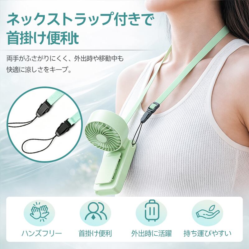 ◆首掛け:ファン本体と同色系の長さ調節可能ストラップ付き、首にかけて、両手をふさがず、便利さがぐっとアップします。