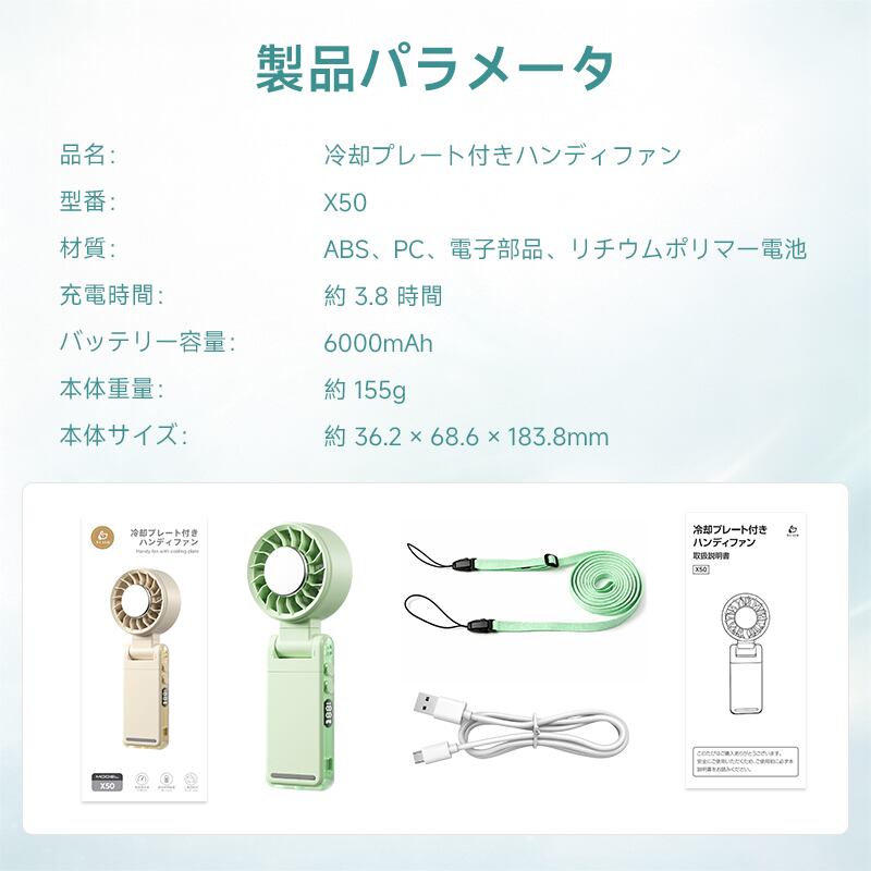 品名:冷却プレ一ト付きハンディファン