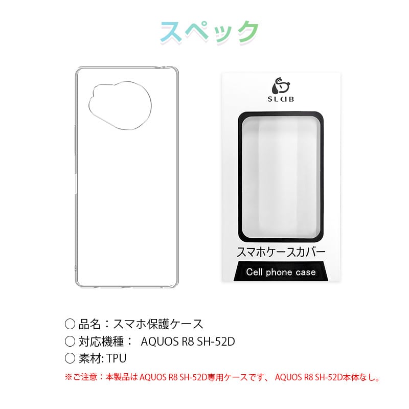 AQUOS R8 スマートフォンケース SH-52D ケース AQUOSケース AQUOSスマホ アンドロイド おすすめ おしゃれ スマートフォン シャープスマホケース 薄い 軽量 背面 SHARP ケース カバー シンプル スマホケース スマホカバー TPU ソフト クリアケース ソフトケース カバー 保護 スマホ tpuシニア向け ケータイ クリア 透明 高透過率 衝撃吸収 指紋防止 摩擦防止 黄変防止 黄ばみ防止 ずっとクリア 落下から守る 携帯電話保護 高い耐衝撃性 指紋防止 指紋付きにくい 疎油 撥水加工 水洗い対応 密着痕防止 マイクロドットパターン 超スリム 大人 レディース メンズ 高めエッジ設計 カメラ保護 レンズ保護 液晶画面保護 スクリーン保護 コンピューターカット フィット ピッタリ 軽い 薄型 滑りにくい 樹脂 熱可塑性ポリウレタン 高品質素材 厳選素材 着脱らくらく 滑りにくい 黄ばみにくい ユニセックス プレゼント ギフト 贈り物 誕生日 クリスマス 母の日 父の日 敬老の日 入学祝 卒業祝 お祝い バレンタイン ホワイトデー サプライズ