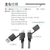 USB Type-C、USB-A、Micro-USB、iPhone端子の多種端子を搭載。6パターンの組み合わせでさまざまな機器に使えるマルチケーブルです。