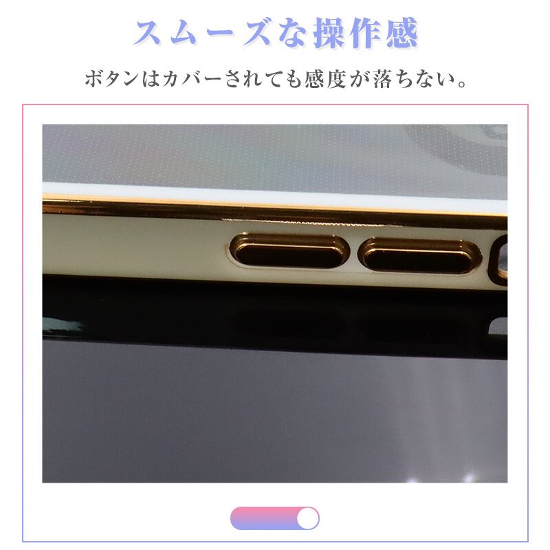 透明な裏面はiPhone本来の美しさを示し、ケースの裏には目に見えない粒子状の凹凸が施されており、本体に密着してしまったり、ケースの内側でにじみ現象を発生するのを防ぐことができます。そして、メッキ加工によって、おしゃれで独特の輝きを放ち、スマホの上品さをプラス。