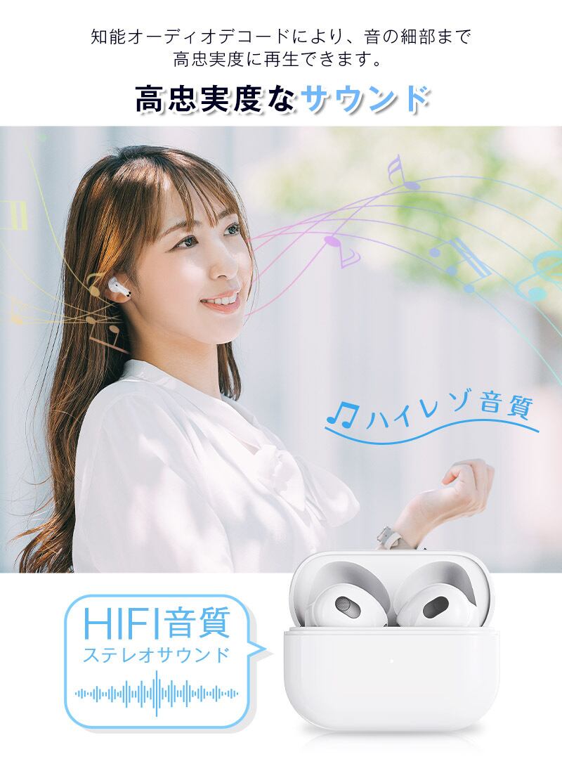 完全ワイヤレスイヤホン Bluetooth5.2 Bluetoothイヤホン HiFi音質 TWSワイヤレスヘッドセット インナーイヤー型 左右分離型 長時間連続再生 日本語取扱説明書付き
