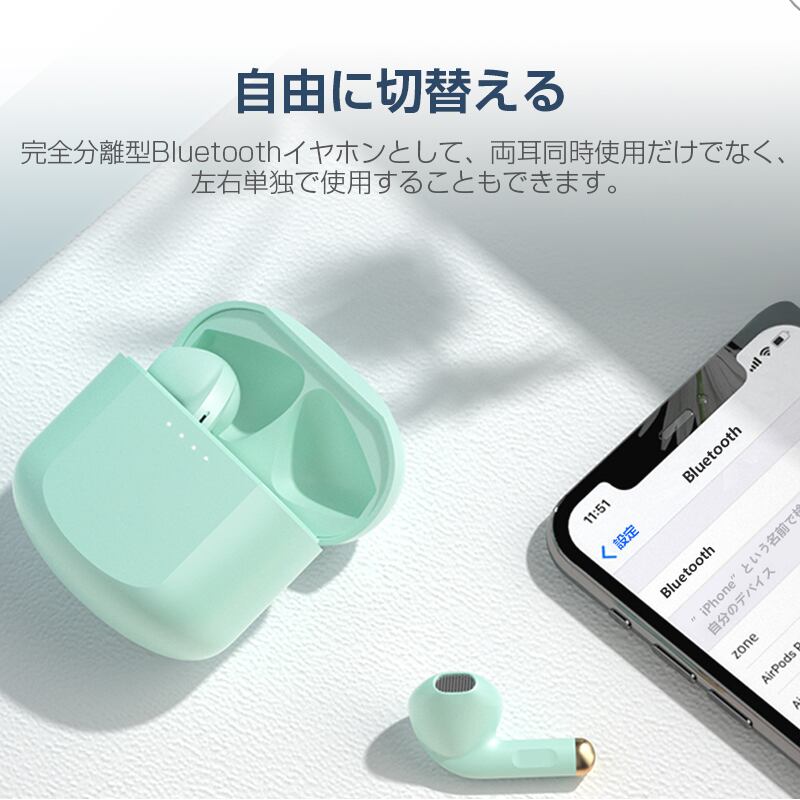 【TWS技術】TWSワイヤレステクノロジーを採用することで両耳分離を実現し、全分離型Bluetooth イヤホンとして、両耳(親友や恋人とシェアで音楽を聴くことができます)で使用することはだけでなく、左右単独(2つのイヤホンとして、別々のデバイスと接続できます)で使用することもできます。