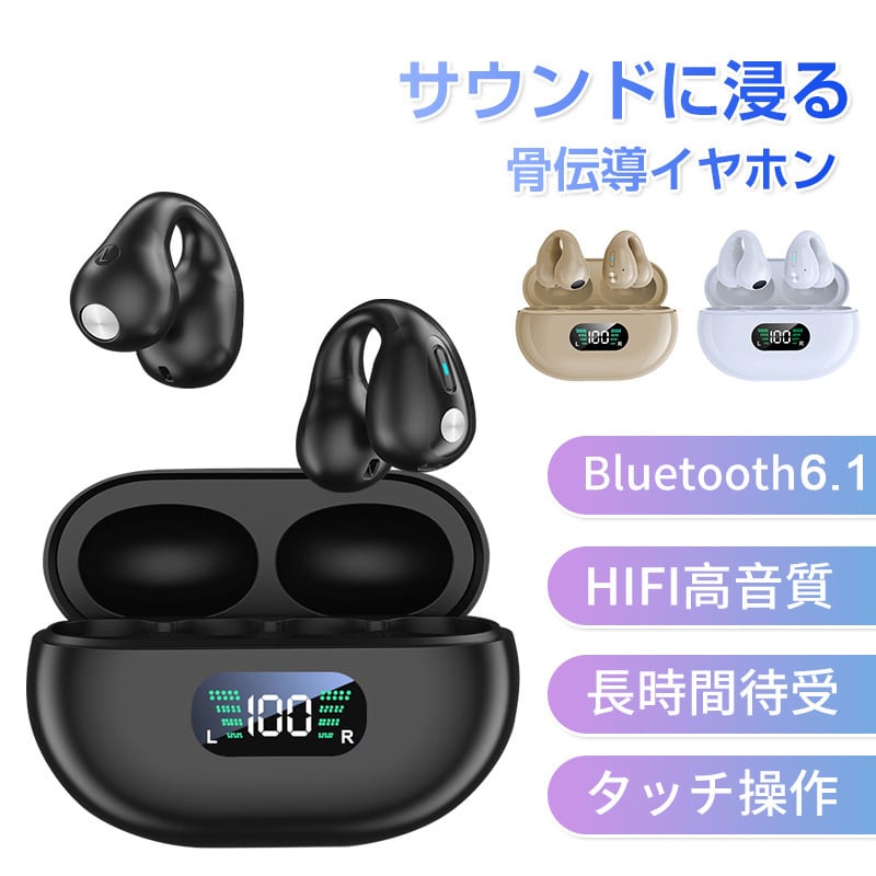 骨伝導イヤホン ワイヤレスイヤホン Bluetooth 6.1 耳を塞がない イヤーカフ構造 挟んで装着 快適 完全ワイヤレスヘッドセット 周囲の音が聞こえる 自動ペアリング 低遅延率 片耳/両耳