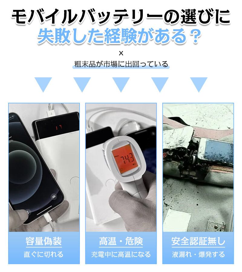 PSEマーク付きの電気用品で技術基準の適合性が確認。スマートチップ内蔵で、多重安全保護。入力過電圧保護、過充電保護、過放電保護、入力過電流保護、温度保護、短絡保護、出力過電圧保護。急速かつ安全な充電を提供できます。