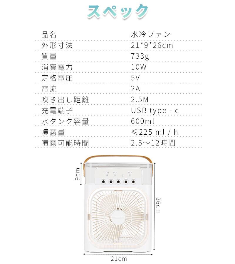 冷風扇 水冷式ファン マスク蒸れ解消対策グッズ 加湿機能付き 噴霧 タイマー機能付き 快速冷却 瞬時清涼 広角送風 低騒音 USB給電式 7色雰囲気ライト付き ハンドル付き 3段階風量 小型卓上冷風扇 600ml水タンク ホワイト 熱中症対策 空気浄化 冷却&加湿 香料・精油対応 上から給水 省エネ 静音作動 安眠サポート 睡眠 タイマー機能 そよ風 気持ちいい 清涼 風涼しさ 瞬時清涼 5つの噴霧口 静音作動 180°広角送風 7色ライト 外して洗浄可能 乾燥対策に役立つ 汗取り 成人 プレゼント ギフト 恋人 友達 母 プレゼント ギフト 敬老の日 ホワイトデー 実用的 成人の日 成人式 バレンタイン バレンタインデー 卒業式 入学式 母の日 敬老の日 クリスマス 誕生日 還暦祝い お祝い 合格 ギフト プレゼント 母の日ギフト 彼女 友人 兼用 家族 姉 妹 娘 嫁 妻 奥さん 御母さん 義母 ママ ママ友 お年寄り おばあちゃん 婦人用 20代 30代 40代 50代 60代 70代 20歳 30歳 40歳 50歳 60歳 70歳 暑さ対策 グッズ 外仕事 休暇 テレワーク 90日安心保証付き 日本語取扱説明書付き