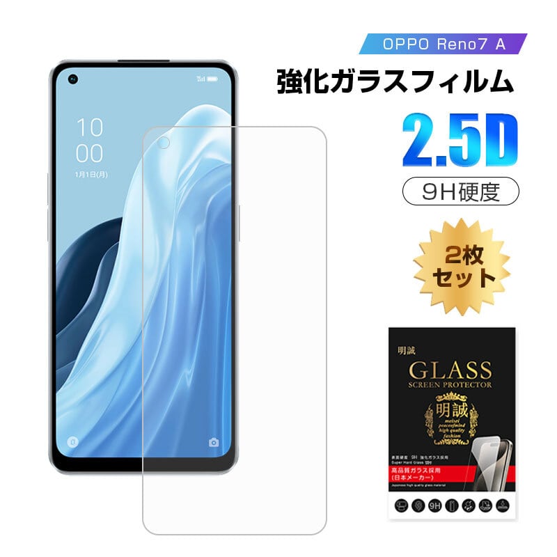 【2枚セット】OPPO Reno7 A 強化ガラス保護フィルム 液晶画面保護2.5D 0.3mm薄型 高感度タッチ スクリーン保護 ディスプレイ保護シール クリア 高透過率 耐衝撃 耐摩擦 スクラッチ防止 飛散防止 9H硬度 ピッタリフィット 気泡レス 疎油 撥水 防汚 簡単貼付け 指紋防止 | meisei-shop