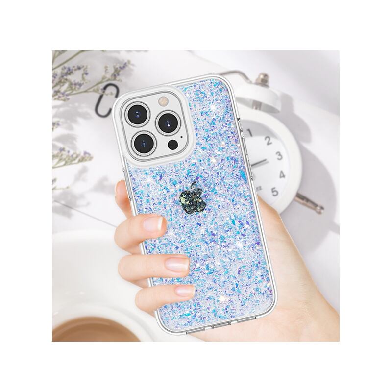 ★【キラキラケース】樹脂製の背面に鮮やかな色の金属片を星屑のようにちりばめた美しいiPhoneケースです。光の加減でラメの色が変わり、様々な表情を楽しむことが出来ます♪