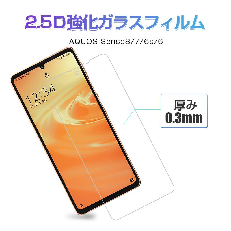AQUOS sense6 SH-54B / sense6 SHG05 / sense6 SH-RM19 / sense6 SH-M19 / sense6s SHG07 / sense7 SH-53C / sense7 SHG10 強化ガラス保護フィルム 2.5D スマートフォン 薄いシンプル スマホ液晶画面保護 シート クリア フィルム保護 シニア向け 強化ガラスフィルム クリア 透明 高透過率 衝撃吸収 指紋防止 摩擦防止 ずっとクリア 携帯電話 液晶保護シール フィルム 落下から守る 携帯電話保護 高い耐衝撃性 指紋防止 指紋付きにくい 疎油 撥水加工 超スリム 大人 レディース メンズ スクリーン保護 ラウンドエッジ加工 コンピューターカット フィット ピッタリ 薄型 高品質素材 厳選素材 貼付け簡単 おすすめ おしゃれ ユニセックス プレゼント ギフト 贈り物 誕生日 クリスマス 母の日 父の日 敬老の日 入学祝 卒業祝 お祝い バレンタイン ホワイトデー サプライズ
