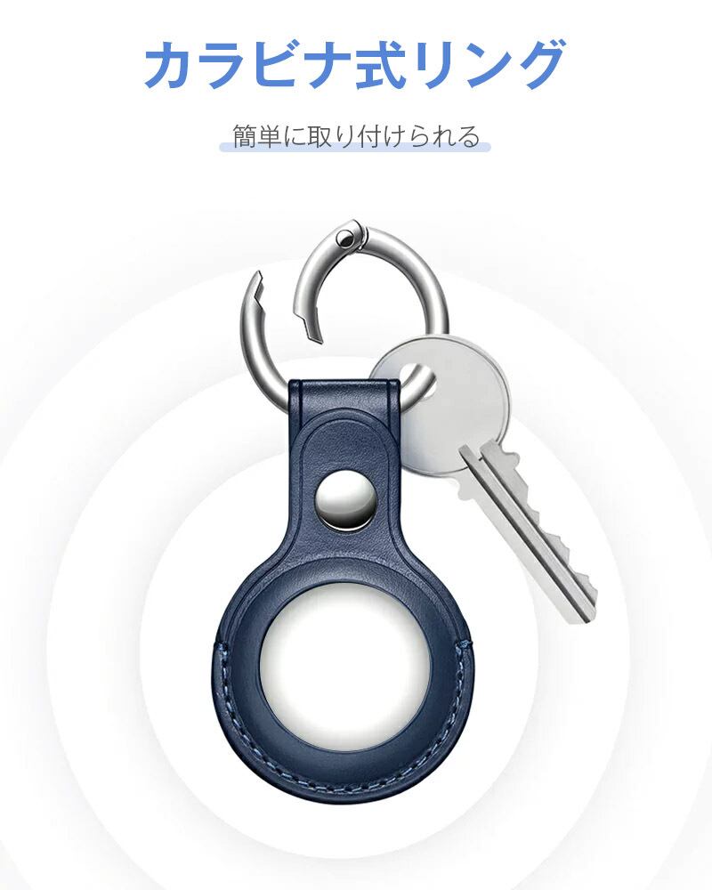 AirTagケース 保護ケース 通信無碍 PU レザー製 傷防止 衝撃吸収 ミニキーホルダー キーリング 手のひらサイズ ステンレススチール メタルリング カラビナ付き 5色選べる カラビナ式リング | meisei-shop