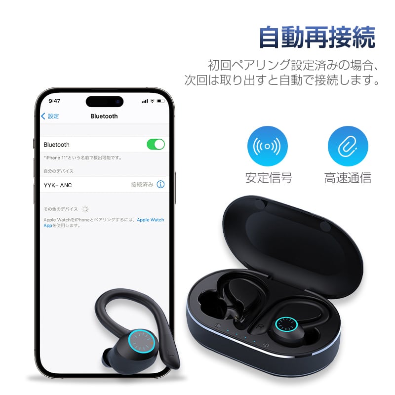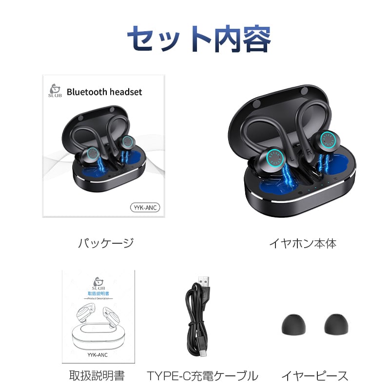 ワイヤレスイヤホン Bluetooth5.2 ANC技術 アクティブノイズキャンセリング 左右分離型 マイク対応 HI-FI高音質 超軽量 耳掛け型 落ちにくい 快適装着 IPX7防水 スポーツ向け ANCノイズキャンセリング カナル型 500mAh充電ケース付き クリア通話 包括的な互換性 iOS Android テレワーク Siri対応 日本語取扱説明書付き PSE認証済み