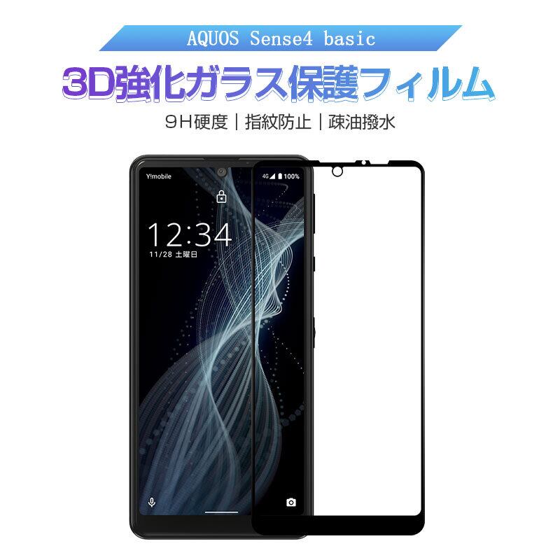 【2枚セット】AQUOS Sense4 basic A003SH 強化ガラス保護フィルム 液晶保護 3D全面保護 画面保護 スクリーンシート キズ防止 ガラス膜 スマホフィルム ディスプレイ保護フィルム スクラッチ防止 Y!mobile | meisei-shop