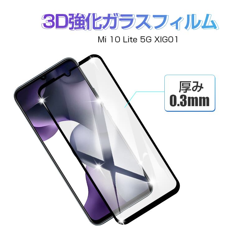 【2枚セット】Mi 10 Lite 5G 強化ガラス保護フィルム 液晶保護ガラスシート 3D全面保護 シール 画面保護 ガラス保護シール スクリーンシート 傷防止 ガラス膜 スマホフィルム XIG01 au | meisei-shop