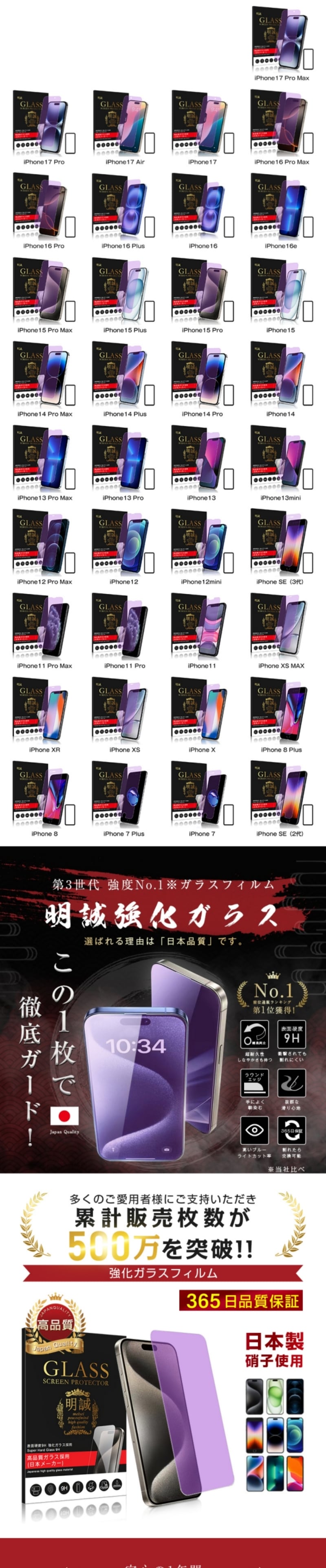 【2枚セット】iPhone17/ 17 Air / 17 Pro / 17 Pro Max/iPhone16/16Pro/16Plus/16ProMax/iPhone15/15Pro/15Plus/15ProMax/iPhone14/14Pro/14Plus/14ProMax/iPhone13/13Mini 強化ガラス保護フィルム ブルーライトカット 2.5D ガラスフィルム 画面保護フィルム 液晶保護 | meisei-shop