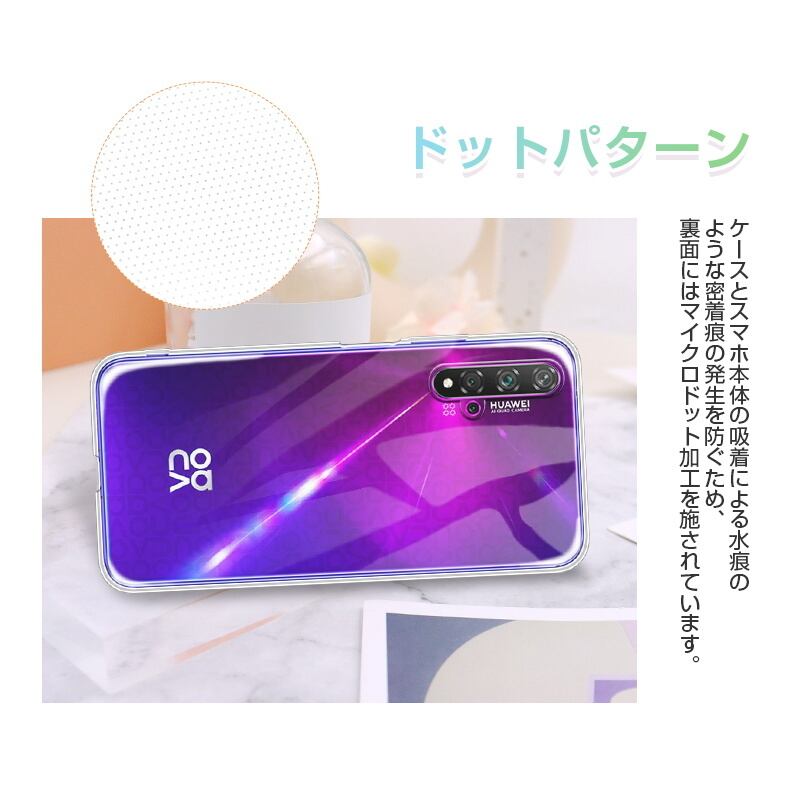 Huawei Nova 5T 楽天モバイル スマホケース TPU スマホカバー 携帯電話ケース 衝撃吸収 擦り傷防止 耐衝撃 薄型 軽量 ソフトケース クリア 滑り止め ストラップホール マイクロドット加工