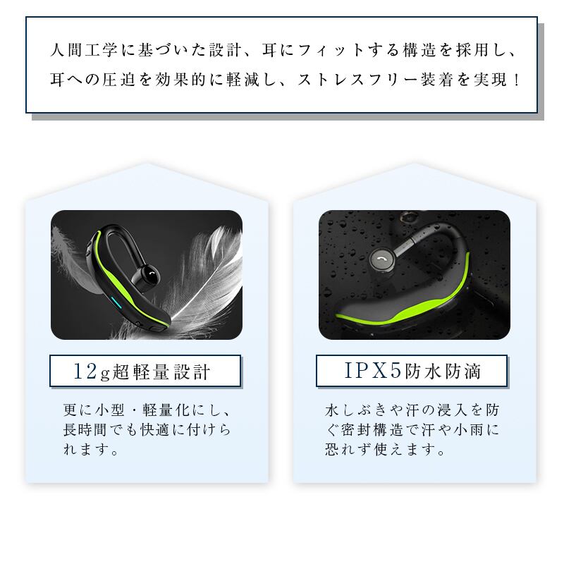IPX5 防水! 日本語音声通知ワイヤレスイヤホン !