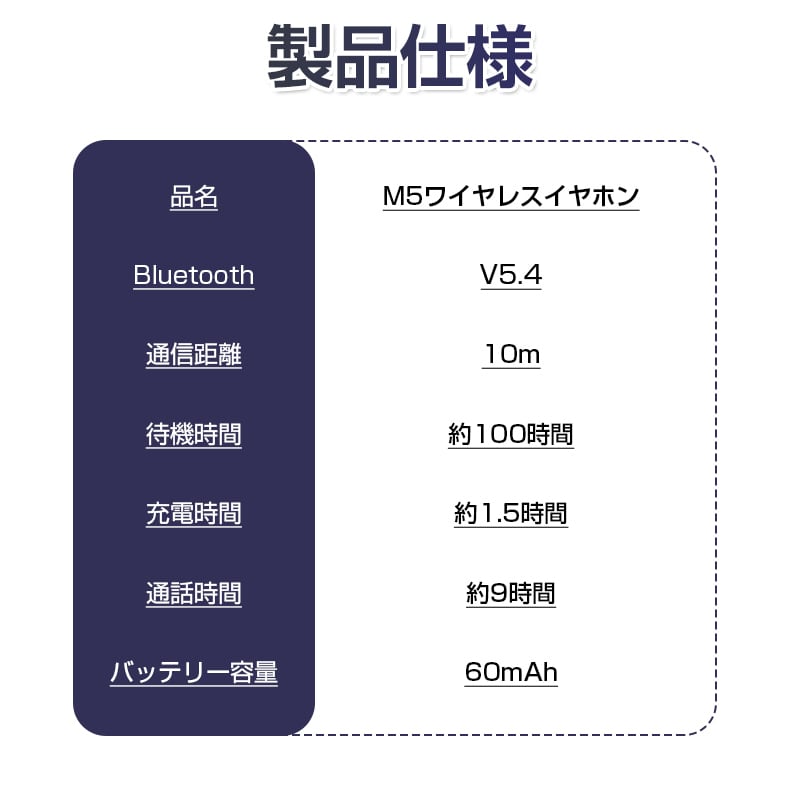 【超長時間使用】Bluetooth5.4にバージョンアップして、もっと省電力になりました。60mAhのリチウム電池を内蔵し、わずか1.5時間でフル充電、100時間の待機時間が使用可能で、9時間の音楽再生、9時間の通話時間で安心して使用できます。IOSバッテリー容量の表示機能を備えています。