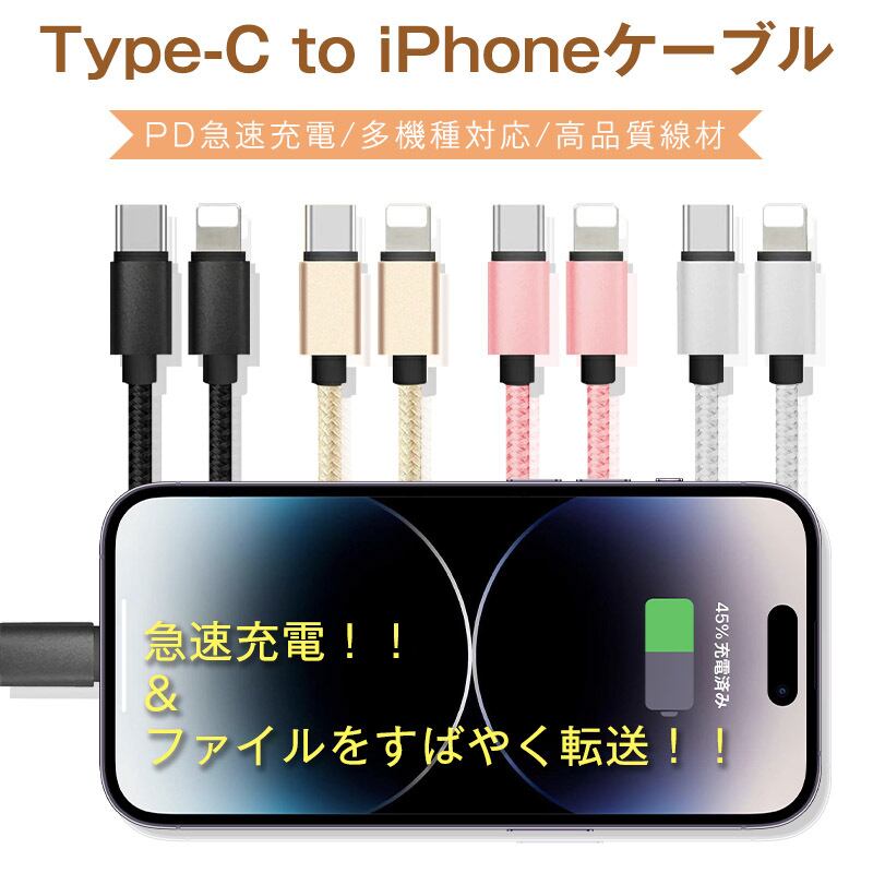Type C to ライトニング ケーブル PD急速充電 データ伝送 Type C to ライトニング ケーブル USB-C ライトニング Power Delivery対応 PD急速充電 ナイロン編み データ伝送 高耐久 iPhone iPad MacBook 対応 充電器 1m iPhone13 iPhone12対応 仕事場 オフィス デスク ワンルーム 一人暮らし 新生活 贈り物 ギフト プレゼント 誕生日プレゼント お祝い 内祝い 結婚 結婚祝い 新築祝い 引っ越し祝い 引越し祝い 母の日 敬老の日 デザイン おすすめ 可愛い かわいい おしゃれ 北欧 インテリア シンプル 在宅勤務 在宅ワーク ホワイトデー サプライズ