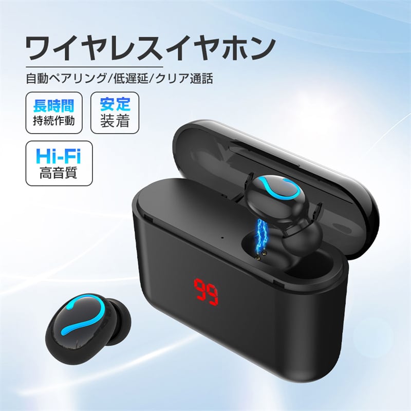 ワイヤレスイヤホン Bluetooth5.3 ブルートゥース ヘッドセット 片耳用 防水 2200mAh充電ケース付き HiFi インナー型 残電量表示 ノイズキャンセリング 大容量 PSE認証済み