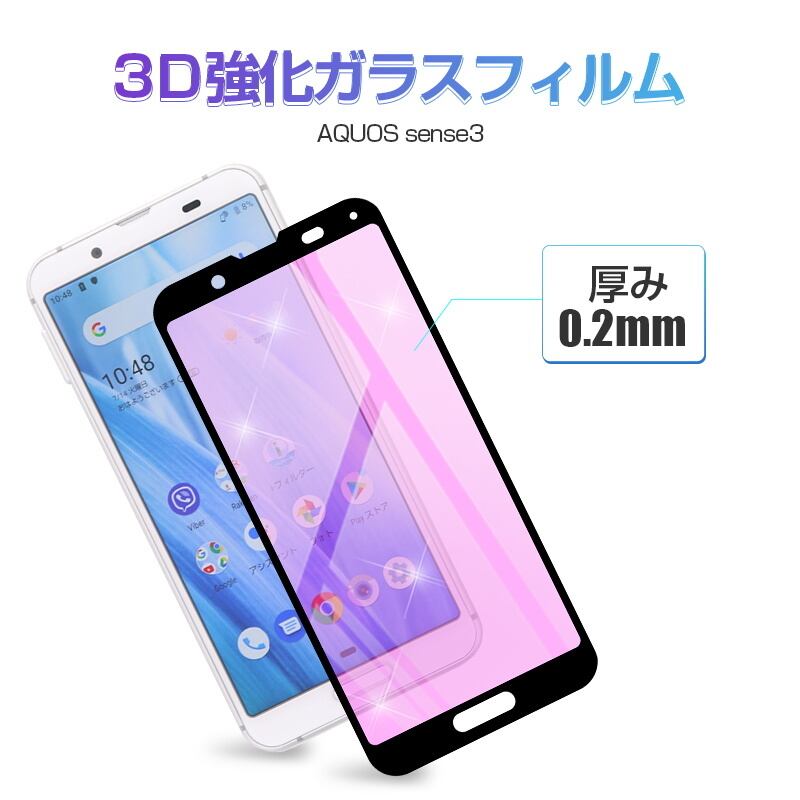 【2枚セット】AQUOS sense3 lite ガラスフィルム ブルーライトカット 液晶保護 docomo SH-02M ガラスシート 全面保護シール 3D曲面 ソフトフレーム au SHV45 ガラスカバー | meisei-shop