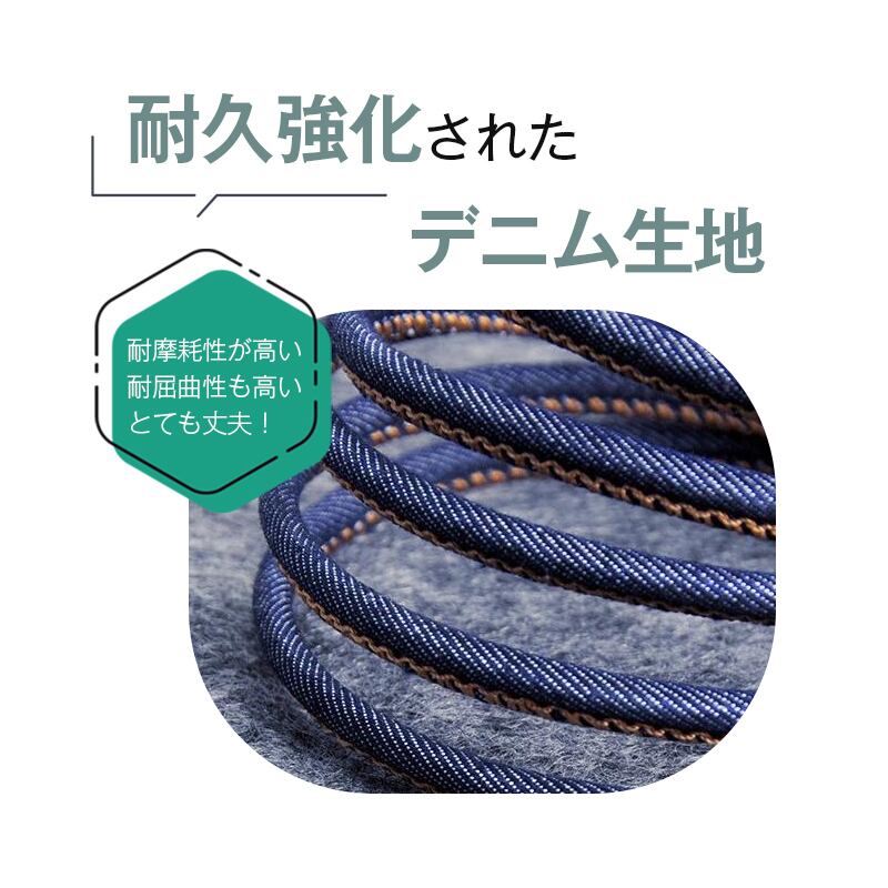 高品質デニムとTPE材料を採用し、製造プロセスにこだわって丁寧に作り上げの急速安全充電&データ転送ケーブルです。