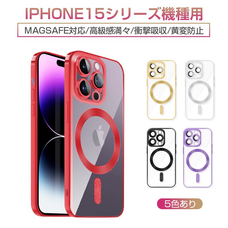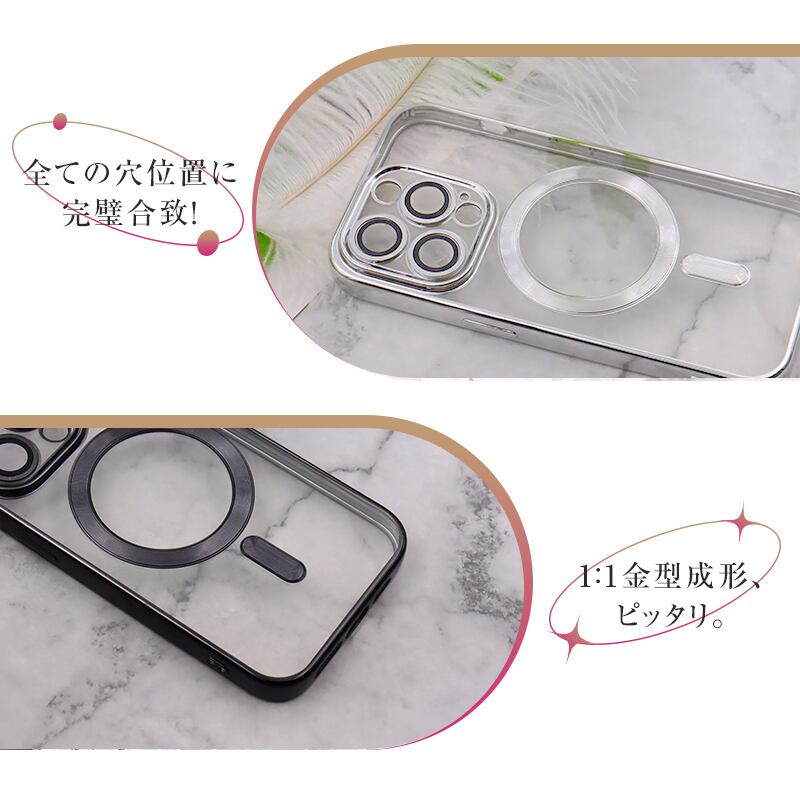 iPhone15/15 Plus/15 Pro/15 ProMax 保護ケース iPhone15 シリーズ機種対応 TPUケースカバー カメラカバー レンズ保護フィルム一体型 マグネット内蔵 MagSafe対応 つけたままワイヤレス充電 ソフトケース メッキ加工 金属感 ストラップホール付き 超薄型 超軽量 衝撃吸収 クリア仕様 マイクロドットパターン 黄変防止 | meisei-shop