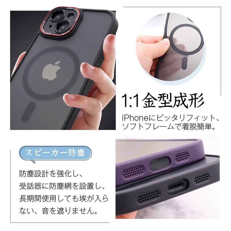 iPhone 15 Pro/15 Plus/15 Pro Max 保護ケース iPhone 15シリーズ機種用 MagSafe充電対応 マグネット内蔵 ハイブリッドケース ソフトフレーム PCケースカバー 磁石内蔵 マグセーフ ワイヤレス充電 アイフォンケース マット仕様 疎油 防汚 撥水 指紋防止 液晶保護 カメラカバー付き レンズ保護 摩擦防止 耐衝撃 ストラップホール付き 薄型 軽量 背面ポリカーボネート | meisei-shop