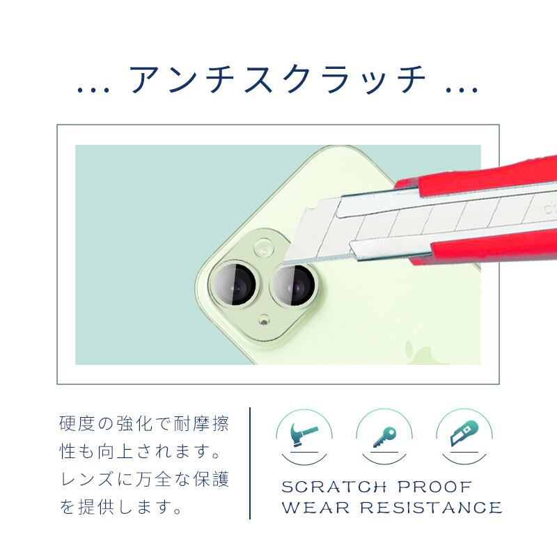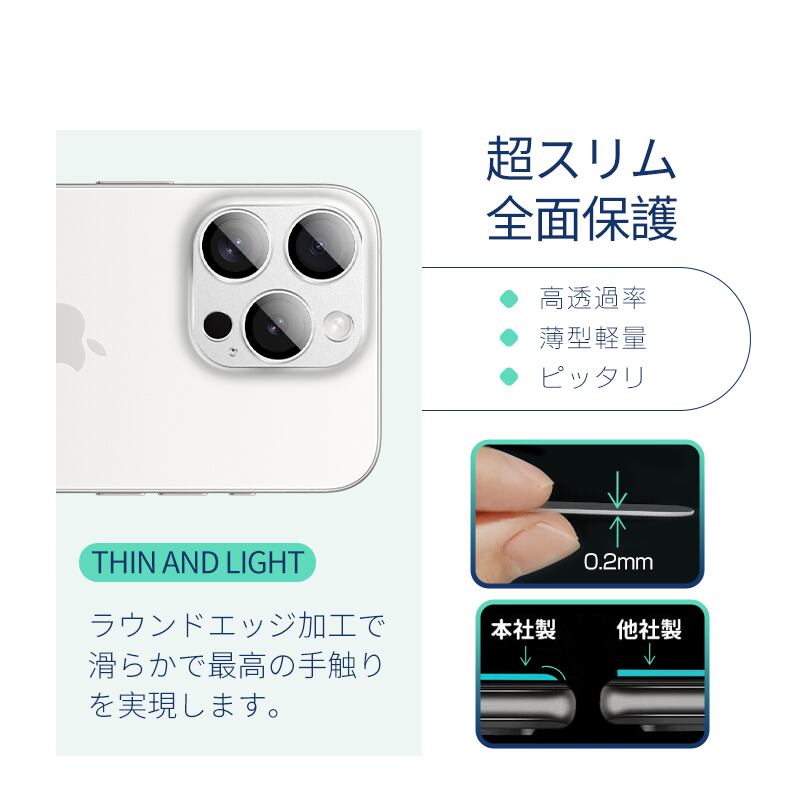 9H硬度の強化ガラス素材を採用することにより、外部からの衝撃を最大限にカットし、レンズ割れを徹底防御する耐衝撃の強化カメラ保護ガラスフィルムです。 落下などによる衝撃を防ぎ、保護機能を更に強化させます。飛散防止処理をされて、万一がガラスフィルムが破損した際にも、破片を飛び散らないので、安心にご利用いただけます。さらに、薄型化と軽量化を実現し、カメラレンズの保護を実施する同時、フィルムの存在を感じさせません。