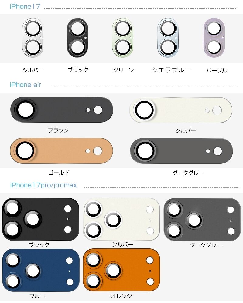 iPhone 17 Pro用:ブラック/シルバー/ダークグレー/ブルー/オレンジ