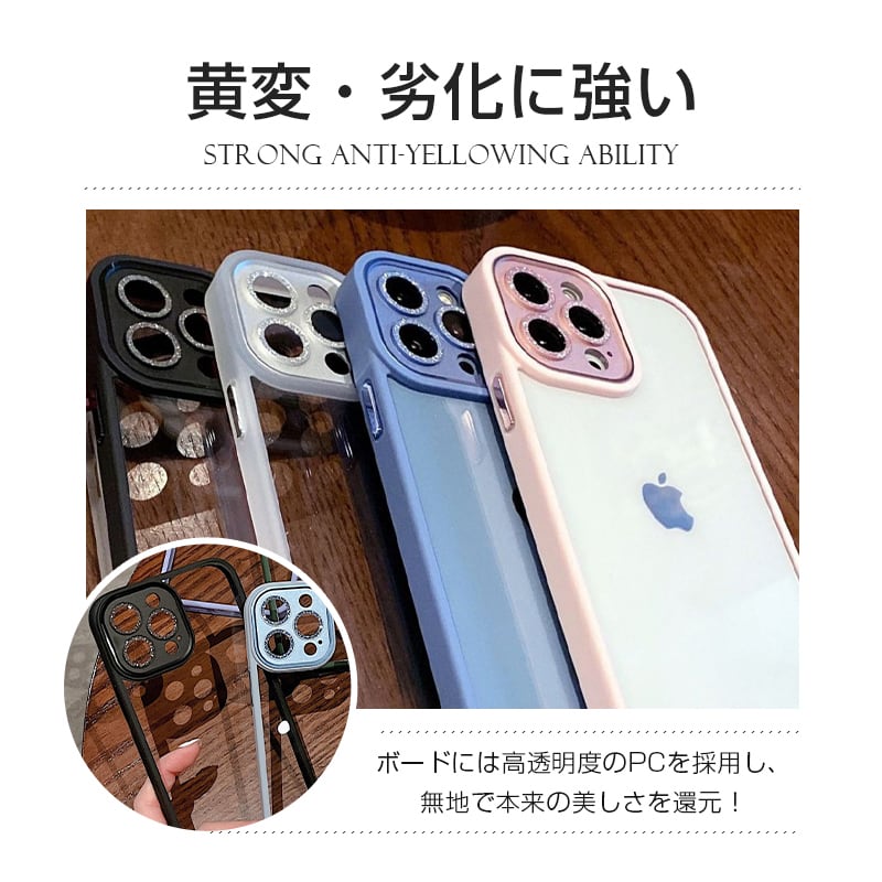 iPhone16/16Pro/16Plus/16ProMax/iPhone 15 Pro/15 Plus/15 Pro Max ハイブリッドケース ソフトフレーム PCケースカバー アイフォンケース ワイヤレス充電対応 クリア仕様 ラメ飾り キラキラ ゴージャス かわいい 疎油 防汚 撥水 アルミ合金カメラカバー 完全摩擦防止 | meisei-shop