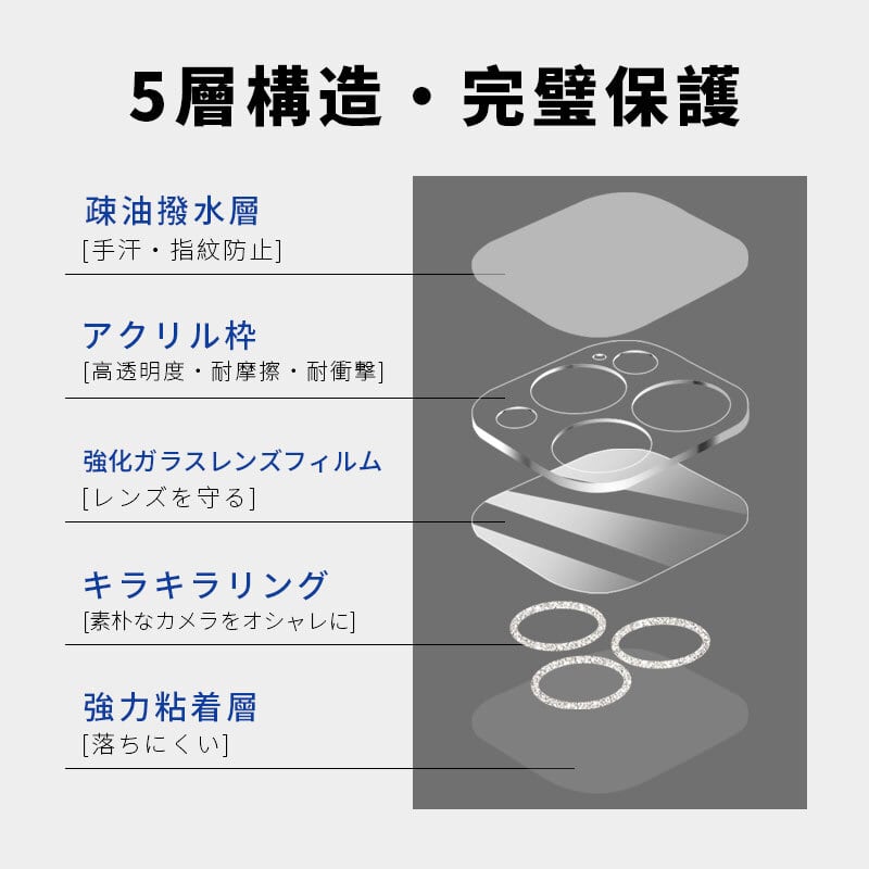 レンズフィルムには、9H硬度の強化ガラス素材を採用することにより、外部からの衝撃を最大限にカットし、レンズ割れを徹底防御できます。高透過率のため、カメラーの使用に影響無し、写真をハッキリ摂れます。高画質で写真の精細さを損ないません。
