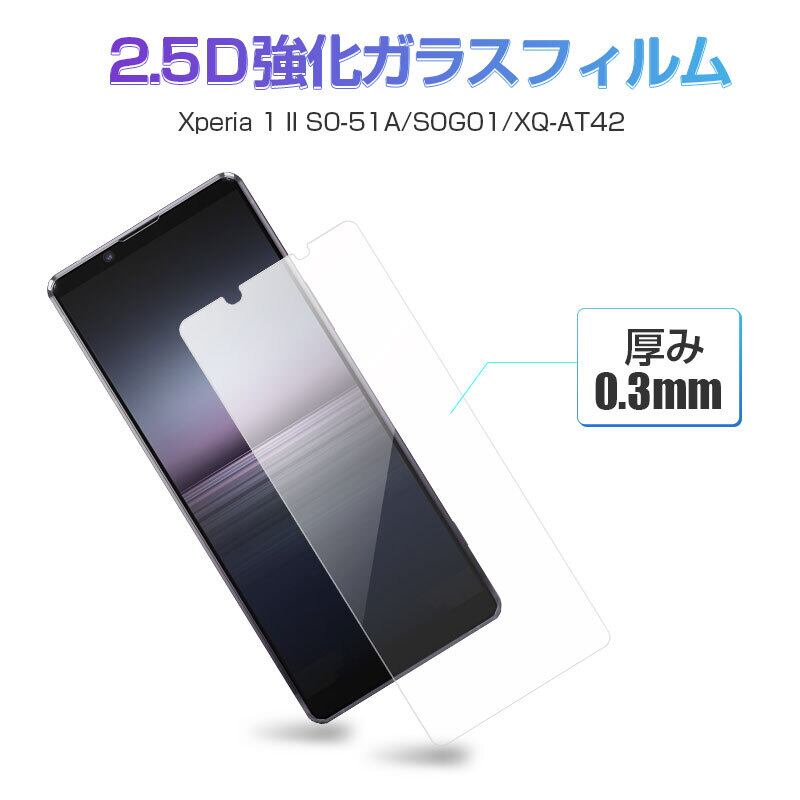 【2枚セット】Xperia 1 II 強化ガラスフィルム SO-51A / SOG01 / XQ-AT42 液晶保護ガラスフィルム エクスペリア ワン マーク ツー 画面保護強化ガラスシール Sony Xperia スマホ用 スクリーン保護シート 傷防止 ラウンドエッジ加工 クリア仕様 超薄型 表面硬度10H | meisei-shop