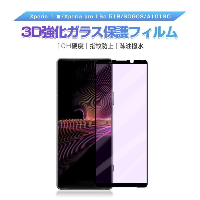 【2枚セット】Xperia 1 III / Xperia PRO-I ブルーライトカット 強化ガラスフィルム 3D全面保護 エクスペリア プロ アイ SO-51B / SOG03 / A101SO / XQ-BC42 / XQ-BE42 液晶保護ガラスシール 目に優しい 視力保護 Sony Xperia スマホ用 エクスペリア アイ スクリーンシート | meisei-shop