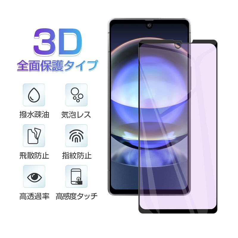 【2枚セット】AQUOS R8 SH-52D / SH-R80 ブルーライトカット仕様 強化ガラスフィルム シャープアクオス スマホ用 液晶保護ガラスシール AQUOS R8 スクリーン保護シート アクオス アールエイト 全面保護 3D フルカバー 高透過率 | meisei-shop