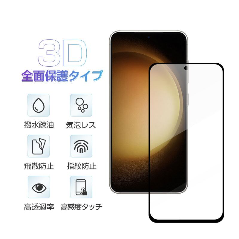 【2枚セット】Galaxy S23 FE 強化ガラスフィルム ギャラクシ スマホ用 液晶保護ガラスシール Galaxy S23 FE SCG24 au スクリーン保護シート 全面保護 3D フルカバー クリア仕様 高透過率 ラウンドエッジ加工 ケース併用可能 超薄型 高感度タッチ 滑らか 表面硬度10H