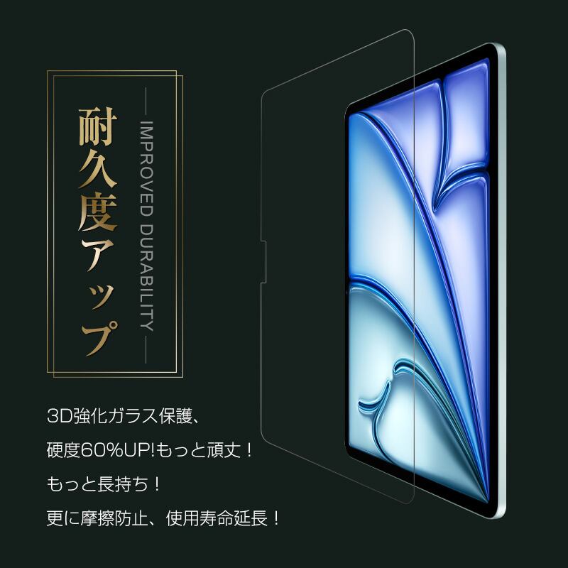 13インチiPad Air(M3) 13インチiPad Air(M4) 強化ガラスフィルム 13インチiPad Air(M2) iPad Air(M2) 液晶保護ガラスフィルム アイパッド エア エムツー 画面保護強化ガラスシール Apple タブレット用 iPad スクリーン保護シート 傷防止 ラウンドエッジ加工